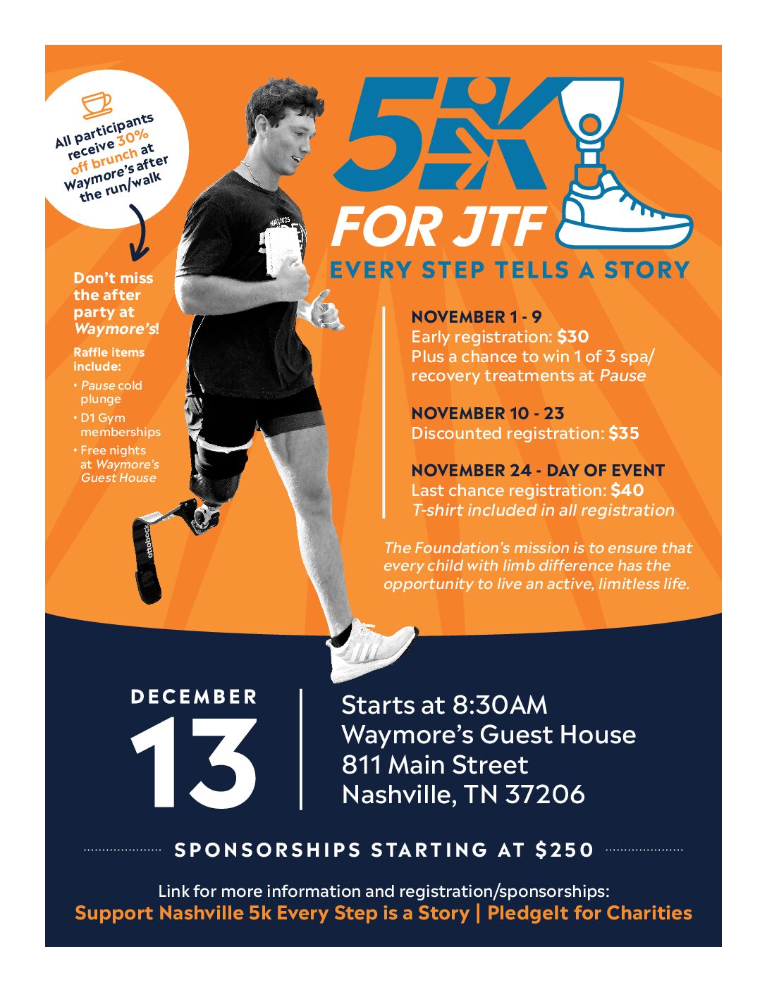 Join us bright and early to grab your race packet, stretch, and get ready for a great morning supporting the Jordan Thomas Foundation! After you cross the finish line, stick around and celebrate with us — brunch tickets are available for purchase for the post-race brunch at The Waymore. It’s the perfect way to refuel, connect, and celebrate your impact!